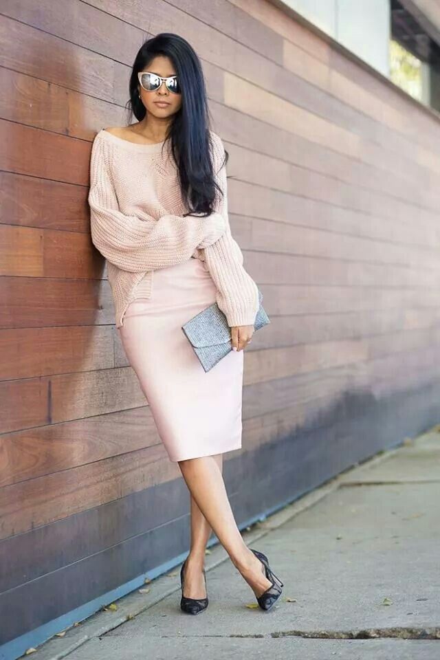 - Romantic date outfit. For such a case as well as possible the jumper of delicate shades - cream, beige, pinkish. To match them, you can pick up a skirt or pants of absolutely any style. In addition to the image will be a small clutch and original jewelry.