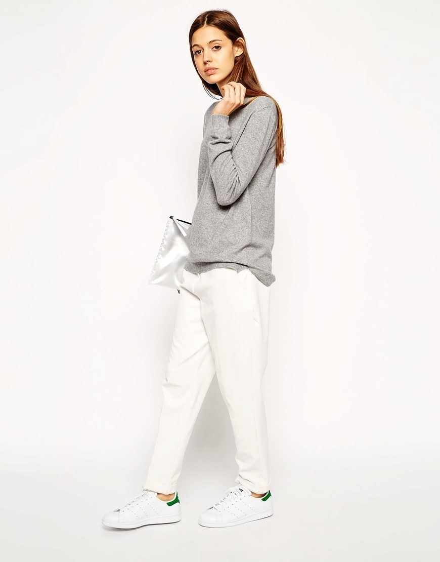 A cashmere sweater is such a universal thing that it can be combined with absolutely any bottom, from a romantic look to a business style.