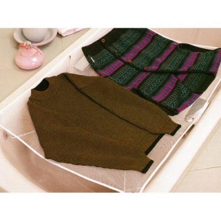 A linen towel is laid out on a flat horizontal surface and a sweater is placed on it. At the same time there should be no heaters, direct sunlight.