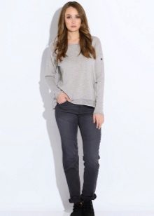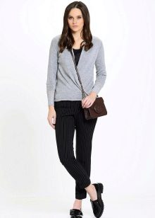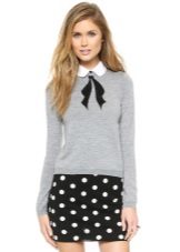 Gray sweater has long been a hit fashion shows and collections of all designers. And there is nothing difficult to make up with him fashionable bows. This will prove the next photo collection.