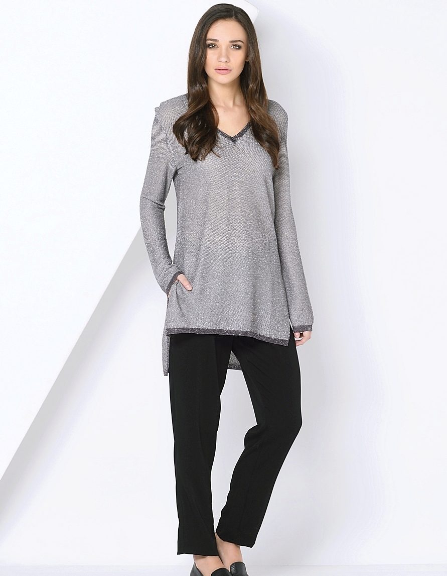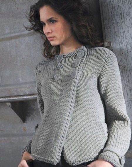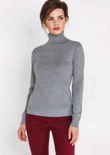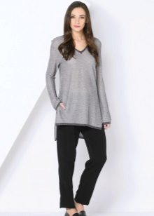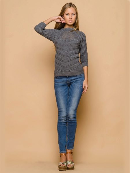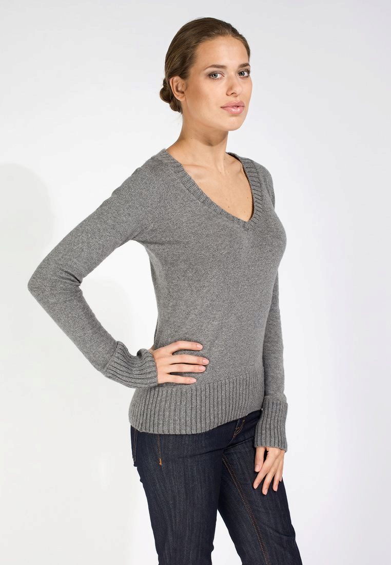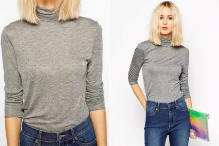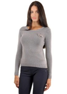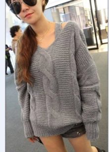 A popular option - with a V-neck. Women love him so much that every fashion designer or mass-market brand has several variants of such a product. It can be of standard length or slightly elongated, with a deep neckline or very small. In any case, a gray V-neck sweater should be in the wardrobe of every lady.
