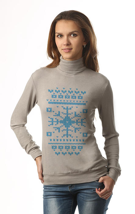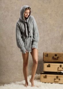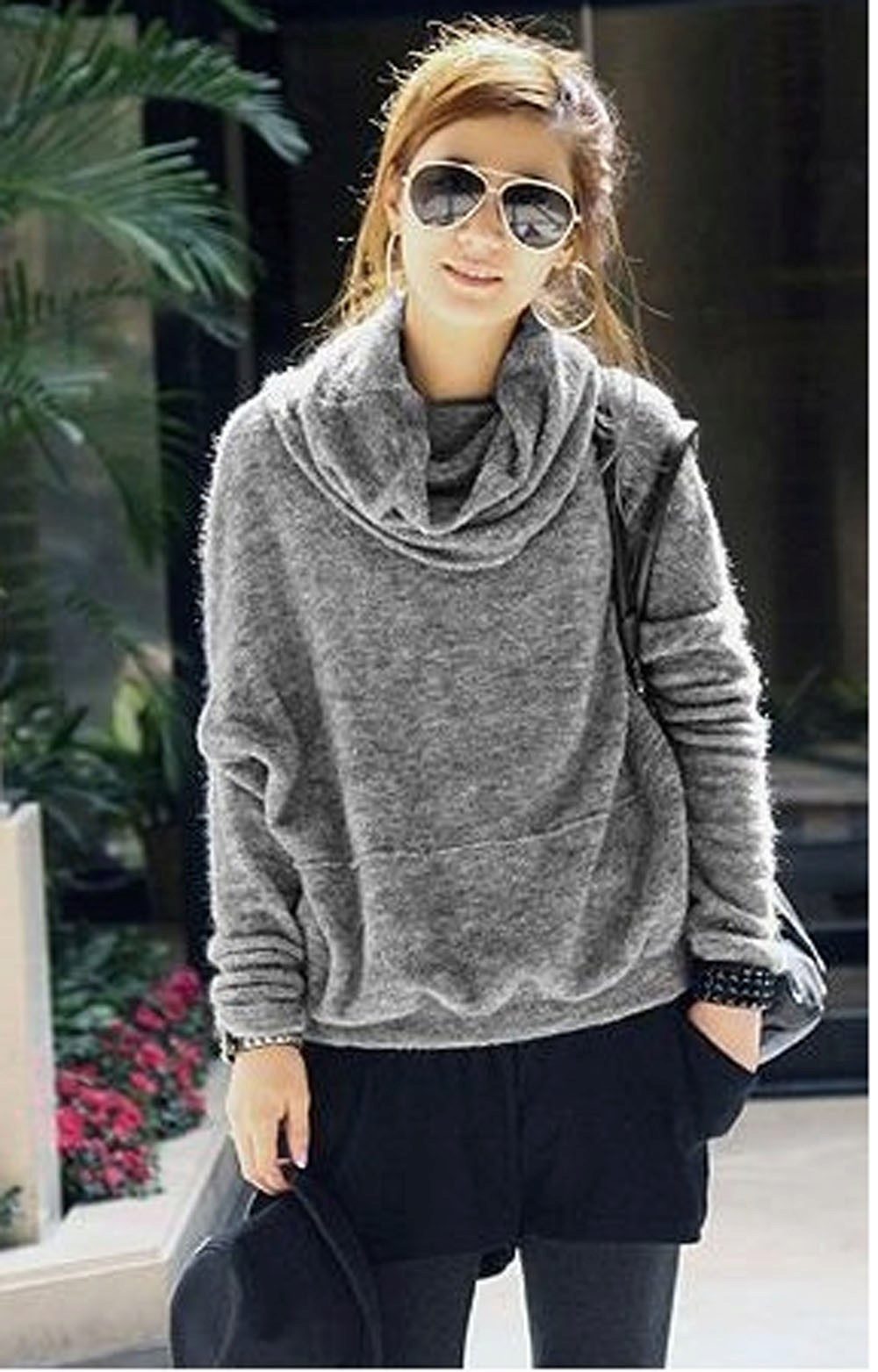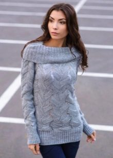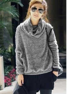 Gray sweater with collar-collar. The larger and larger the clamp, the better! It is cozy and warm. Wearing such a product, you do not want to shoot at all, so comfortable in it.