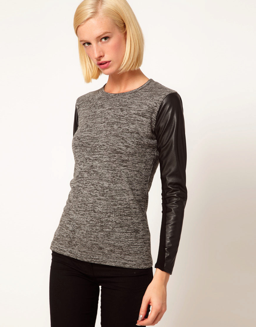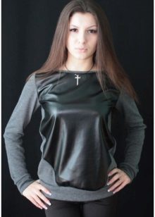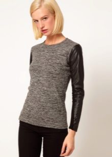 Recently, sweaters with contrasting inserts for texture - suede, leather, velvet or guipure are in great demand. They add to the thing notes of originality, make it elegant and solemn.