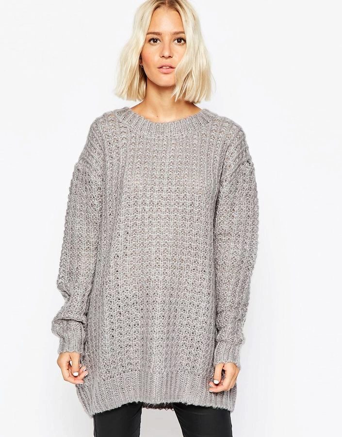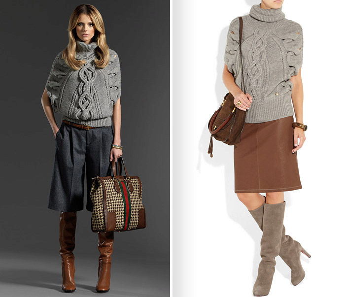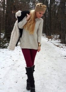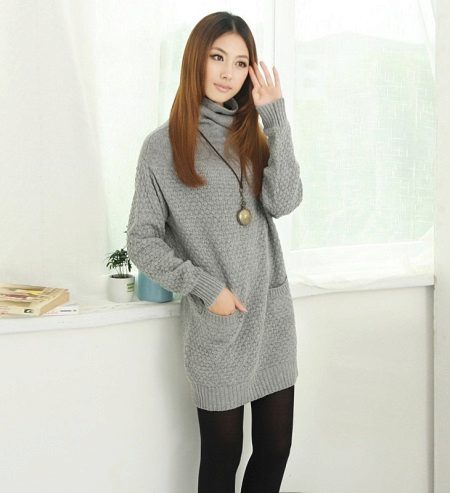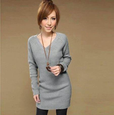 An elongated sweater tunic is ideal for cool weather. He is worn with leggings or with tight tights. It looks great with ankle boots on a flat sole, high boots with heels.