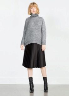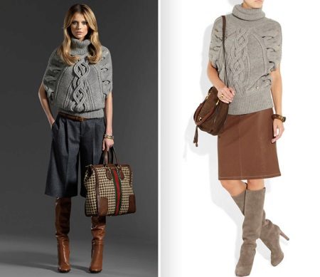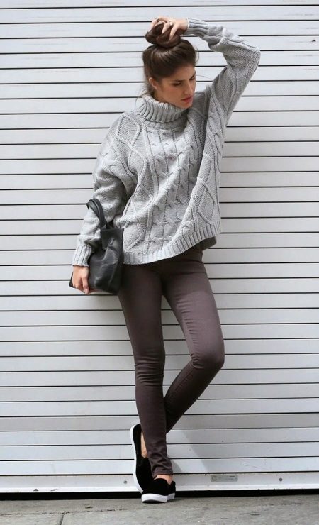 Gray color designers recommend to combine with a bright bottom, or, conversely, to pick up monochrome things in a single color scheme. In any case, the gray sweater is universal, practical, it is comfortably and pleasantly located in it.