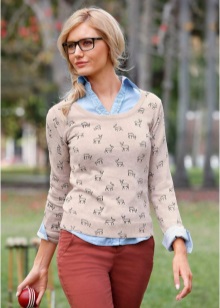 The peculiarity of the pullover can be called a great conservatism. The pattern implies a narrowed waist, emphasizing the overall look at the female beginning. The model is perfectly combined with shirts and will fit well into the dynamic rhythm of the day. Women's pullover options today are far from strict design. Depending on the type of material used in production, the product is not only dense and voluminous, but also light openwork.