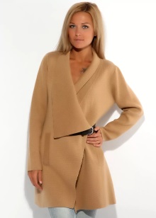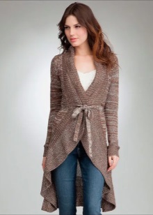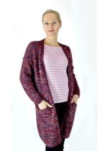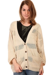 - Cardigan differs from previous versions by the presence of a central clasp. It can be carried out with the help of a zipper or on buttons. An interesting constructive solution of this group is the clasp odor, which is fixed on the waist with a belt. Some versions do not provide for fastening at all, allowing smooth soft coats in front. Often, cardigans are decorated with decorative elements in the form of pockets, belts, draperies and even a hood.