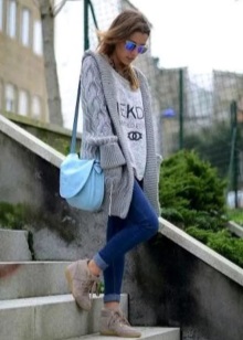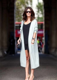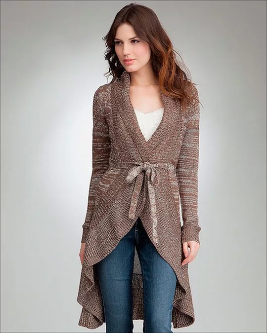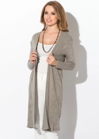 At one time, the appearance of elongated semi-adjacent versions combining a cardigan with a skirt introduced a new round in the evolution of a sweater without a collar. The layering and asymmetry of the lines with the use of prints puts the trends of the collection rulers in one row with elegant clothes. Creative women of fashion often decorate their evening ensemble with their own extravagant cardigan.