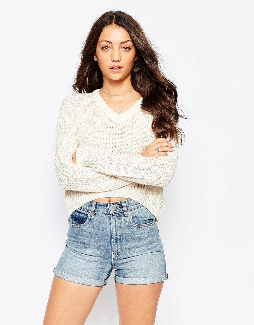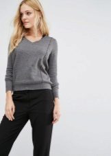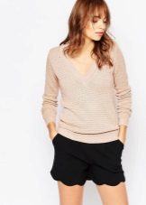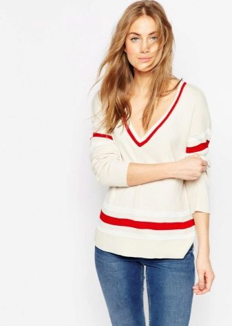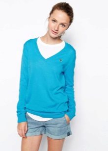 The fashion for V-neck jumpers seems to have been forever. This is the thing that will make its owner slimmer and sleeker. And answering the question of what to wear such a jumper, do not think long. It is worn with absolutely any bottom - from shorts to skirts.