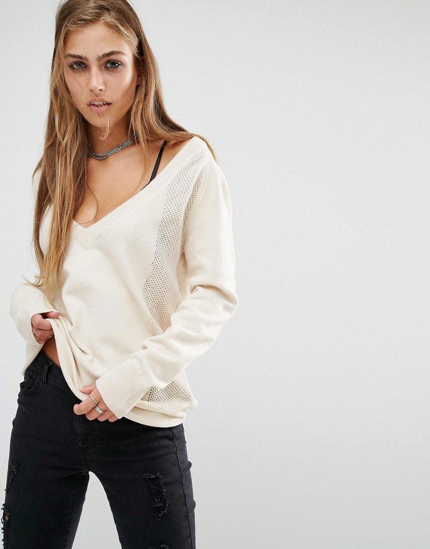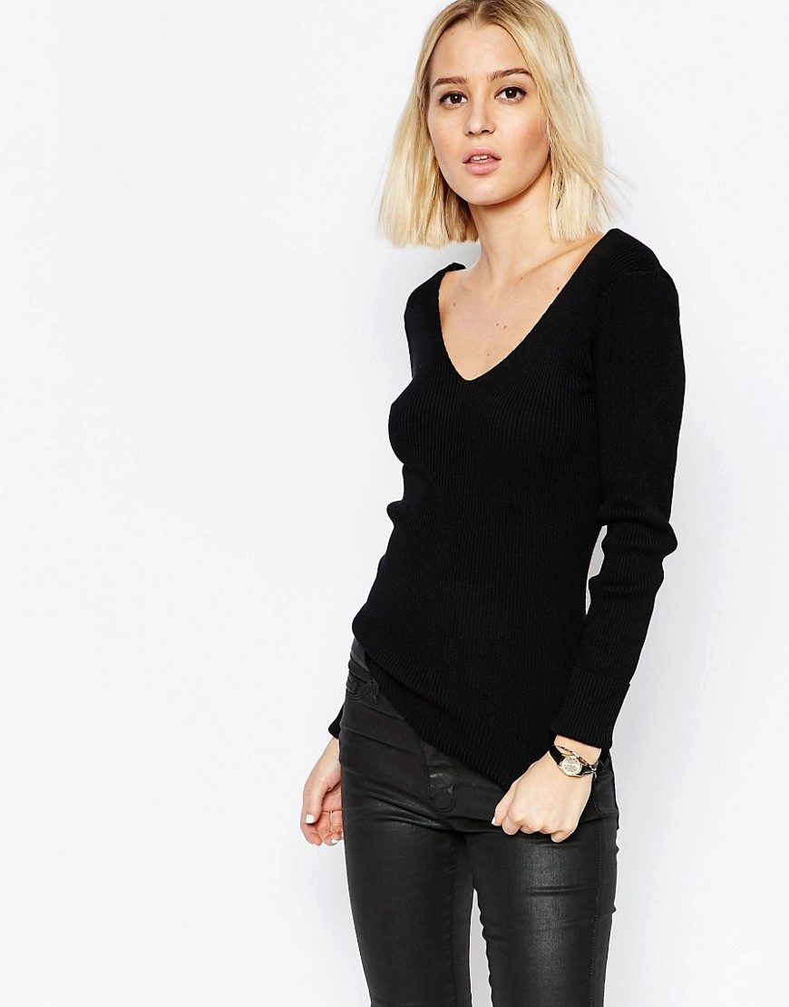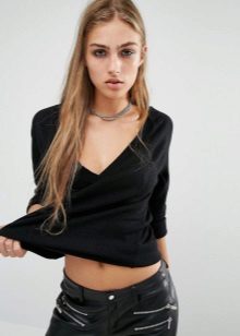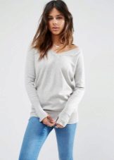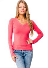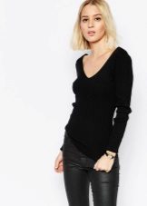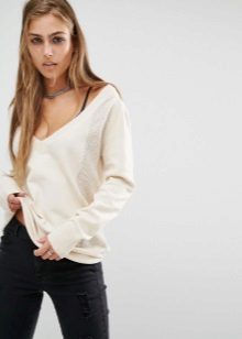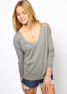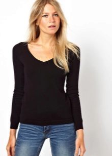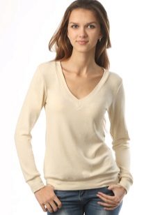 Standard, regular cutout looks restrained and fits any situation. Deep - not for every occasion, it looks too frank and sexy. To smooth this, stylists advise under a jumper to wear T-shirt or body. Thus, the current casual is created.