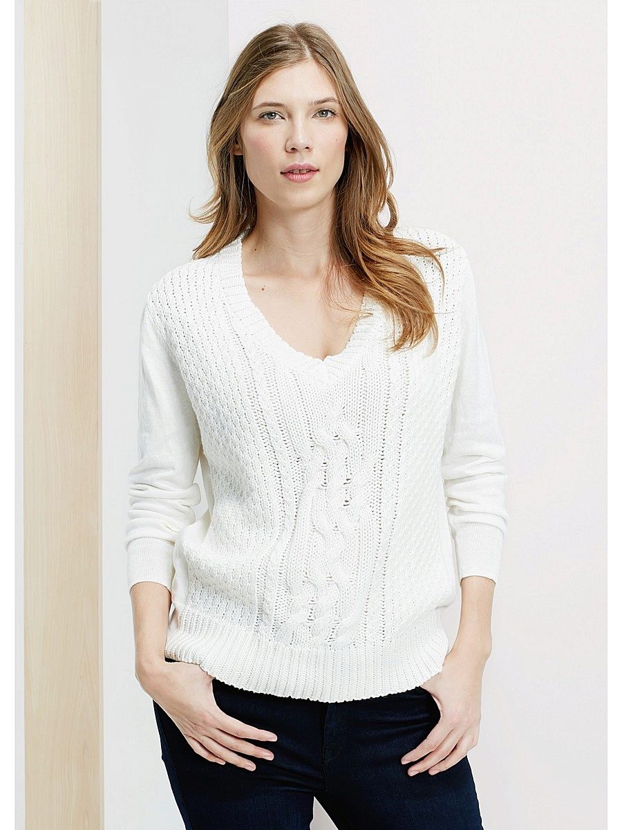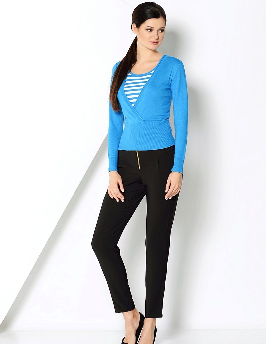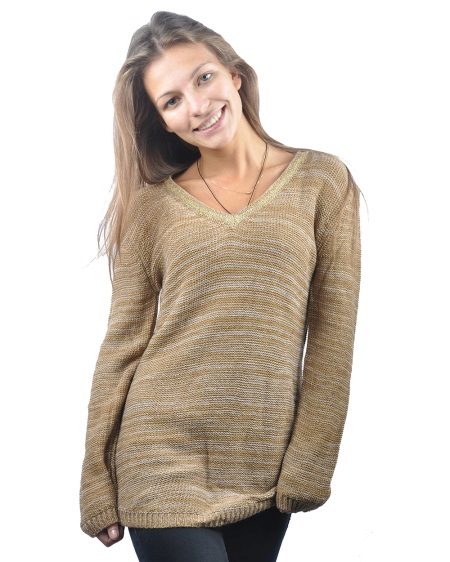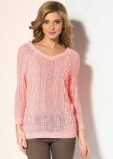 - The upper part of the figure becomes visually slim. This feature of the sweater allows it to be worn by ladies with the “triangle” type. The cut-out of the V-shape will correct obvious body imbalances;