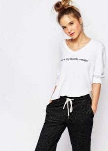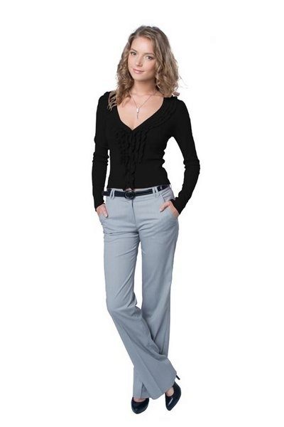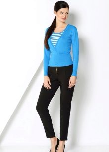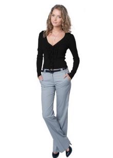 Combining a jumper and strict straight pants with arrows, we get an image to work. Change pants for a pencil skirt - bow for a business meeting is ready. These kits are combined with classic neutral-tone pumps and a briefcase bag.