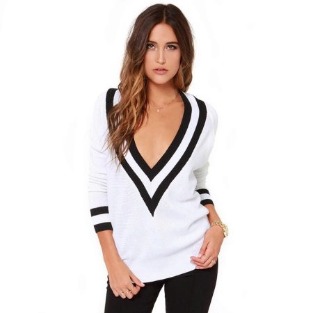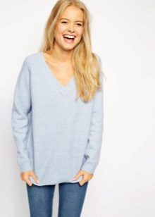 The V-neck is so unique that almost all the beautiful half of humanity fell in love with it. Jumper, despite the simple and concise cut, has several advantages: