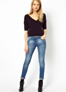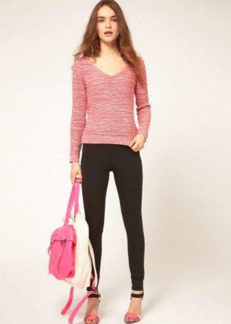 The most current bow - jumper in combination with tight jeans. Casual, concise image will give confidence and comfort. Having added comfortable shoes, a bag over the shoulder, bright massive decorations, you can safely go to study or meet with friends.