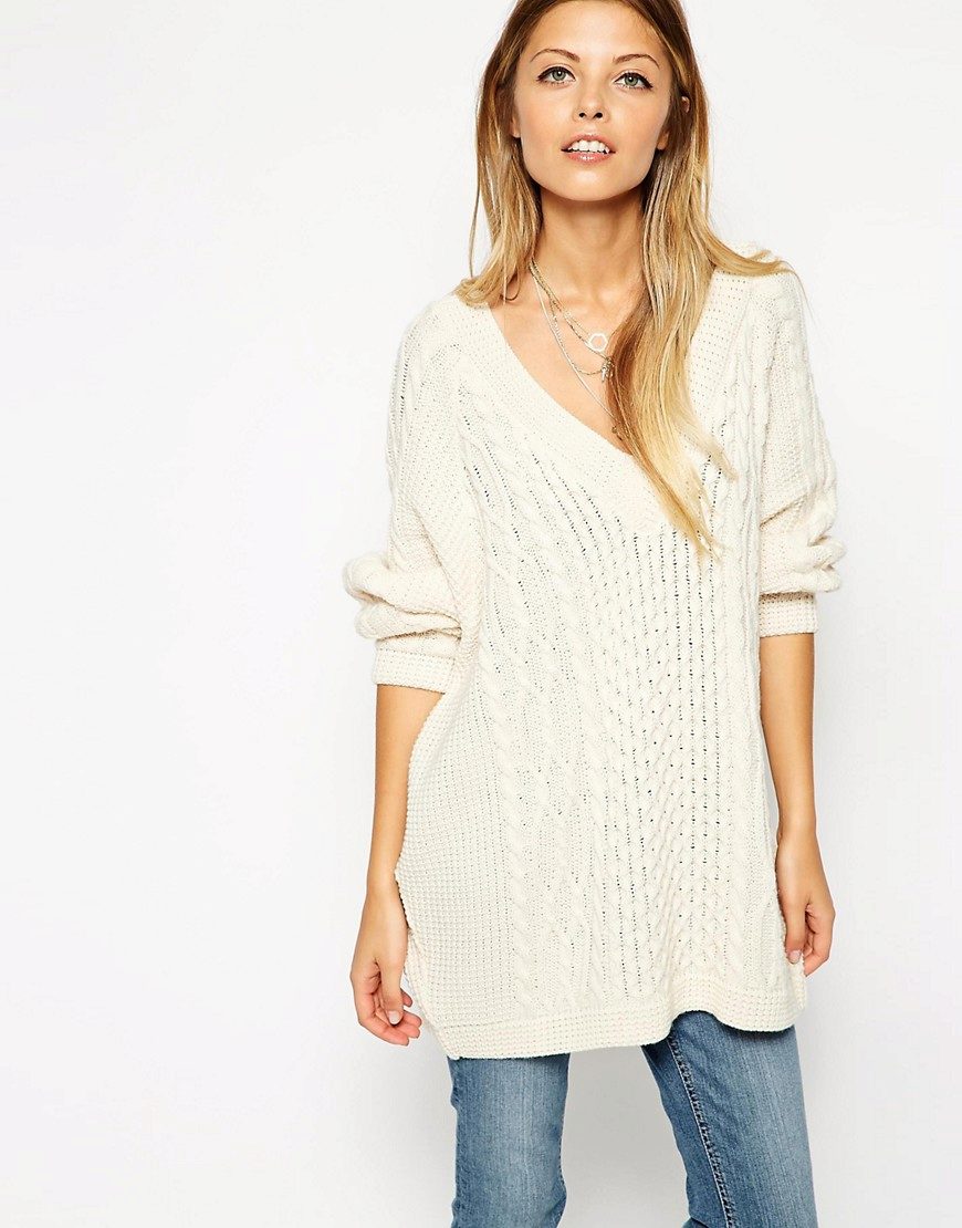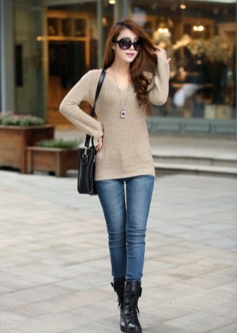 Casual to wear to study - elongated free jumper neutral shade and jeans. Convenient and youth.