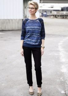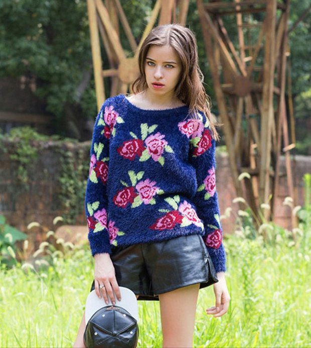 Young people prefer to wear knitted pullovers with prints that look great in tandem with boyfriend jeans, leather or suede mini-length skirts. Pullover can be worn on a naked body or on a turtleneck or shirt.