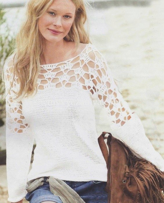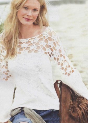Pullover with an openwork yoke is ideal for the embodiment of a romantic image. He looks feminine, original and unusual. A variety of patterns allows you to create charming models. Pullover with a long back - this is a great solution for the cold season. Practicality and convenience, as well as a stylish style are the main advantages of this model.