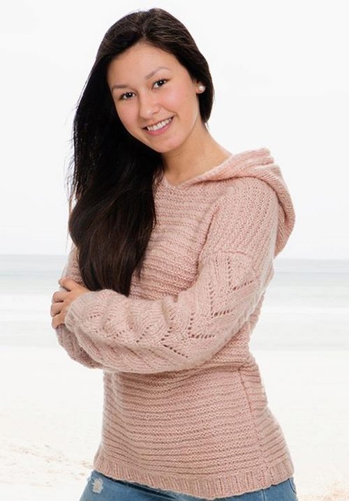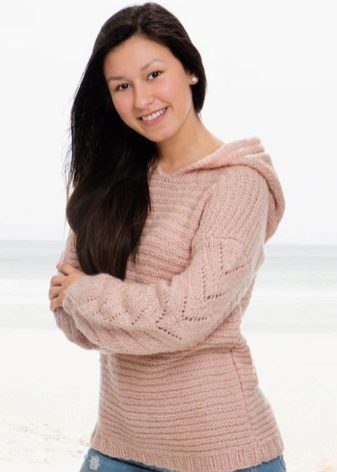 A pullover with a hood is suitable not only for the embodiment of a sports image. The laced models that are used to create a romantic bow look very beautiful. Often this option is preferred by young people. Stylish and comfortable.