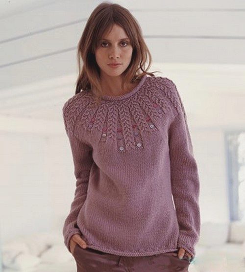 To make the model look extraordinary and spectacular, designers often use two colors. Pullovers can be decorated with various inserts or stripes. Particularly noteworthy is the model of melange yarn, since the dyed thread in different colors when knitting forms a unique pattern that cannot be repeated.
