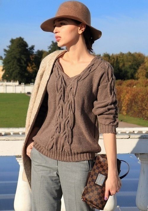 Knitted pullover is suitable for creating spectacular bows in different styles, it can be combined with various elements of women's wardrobe.