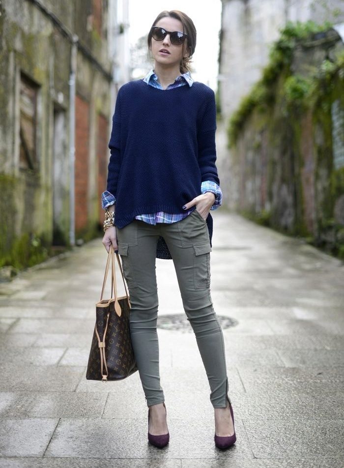 Top and bottom of contrasting colors look impressive. For example, a white shirt can be worn under a pullover of brown or blue. With the ultramarine model, you can wear a pale blue shirt.