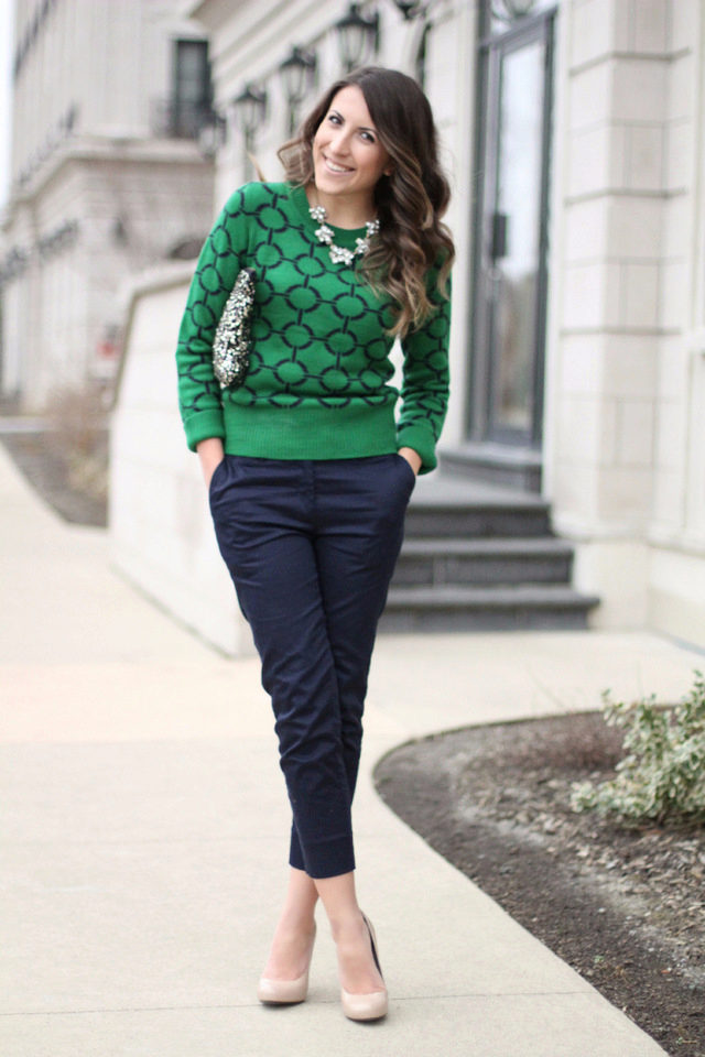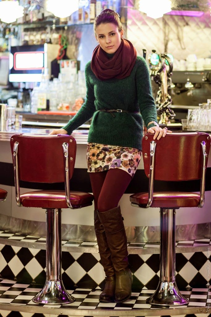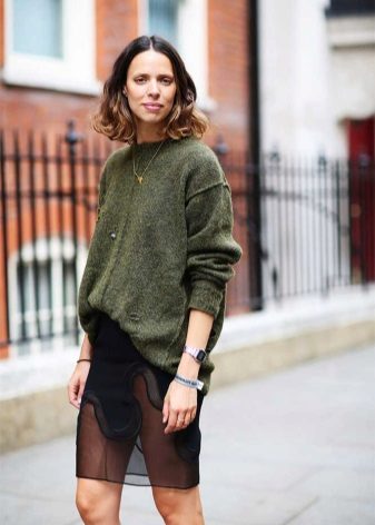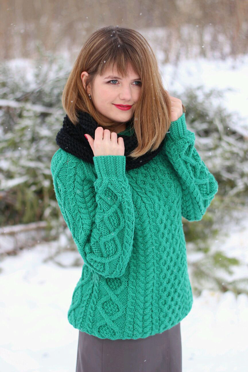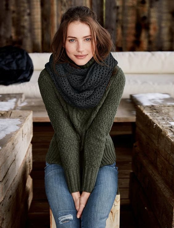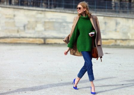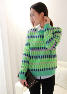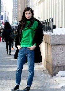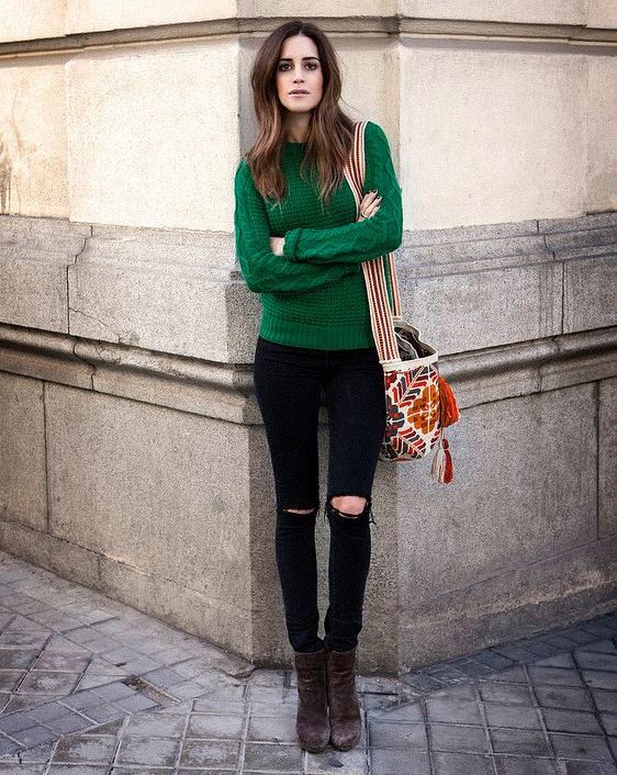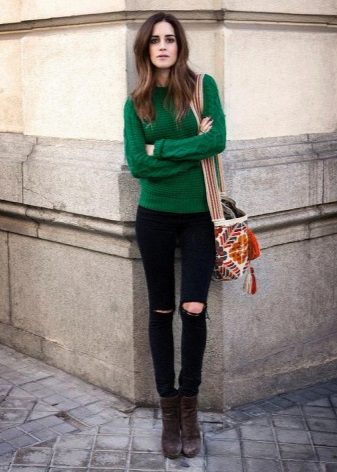 Choosing any of the models of green sweaters, remember the rule of three colors. Do not overload the image with accessories to stay stylish.