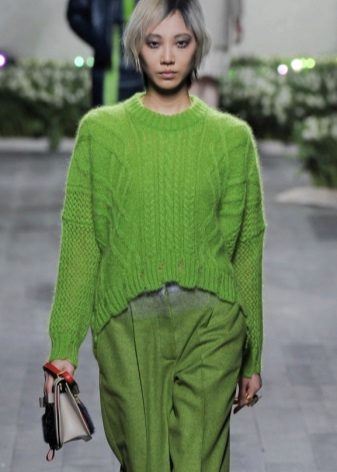 Green is the color of spring and summer. This is a bright and cheerful color, presented in various shades. Because green sweaters - must have in the wardrobe of fashionistas who consider themselves bright and active.