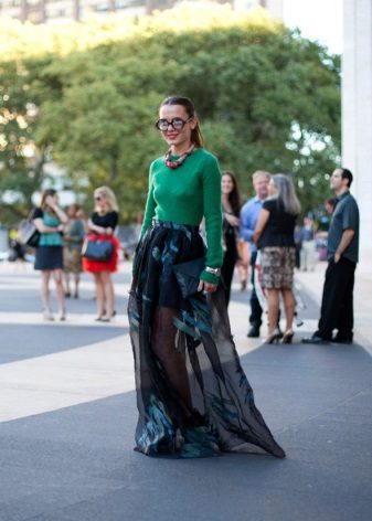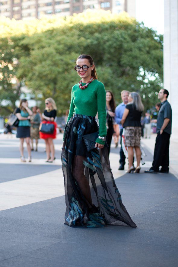 - Black duet with green will add brightness to your casual bow. Pants, narrow or classic, jeans are recommended to wear with a tucked jumper. A pencil skirt, skater skirt or other models of black skirts look feminine with a green jumper.