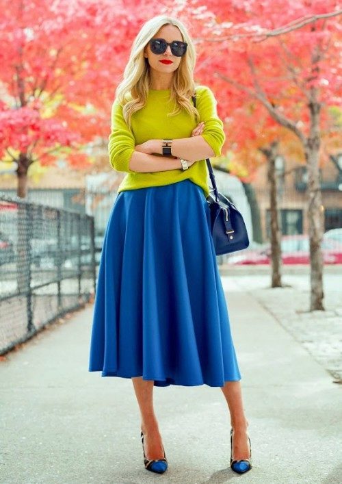- Yellow and its shades are suitable for summer look. For example, pencil skirt or tight pants / jeans.