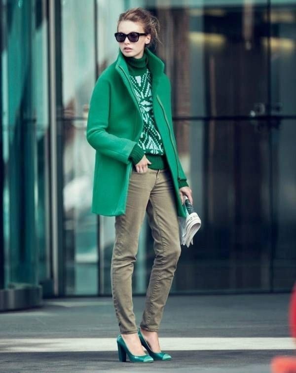 To look stylish, it is enough to understand with what you can combine green jumpers. For this you need to know the combination of colors.