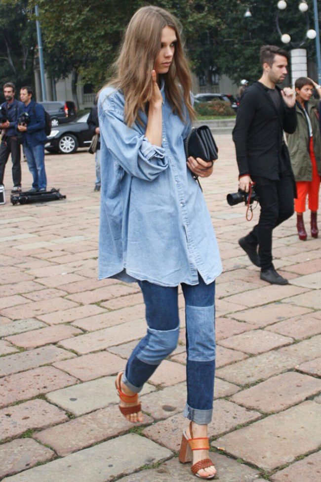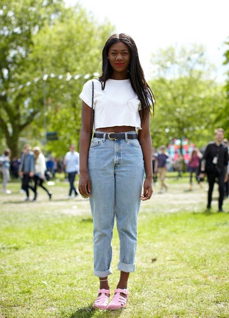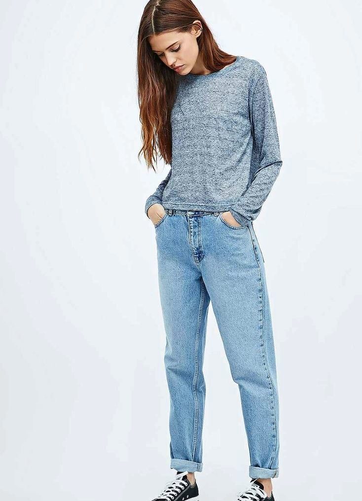 This style is not suitable for all girls. Very skinny women should avoid American jeans, because they will just hang out. They should give preference to trousers with a wide or straight cut.