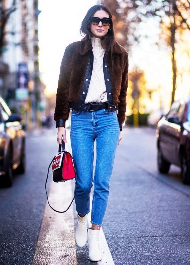 - Crop top or cropped sweater is a fresh and bright solution that looks great with models of high-waisted jeans.