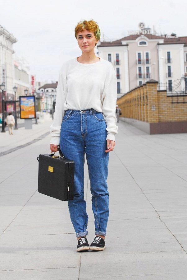 Stylists recommend wearing American jeans with a wide and loose top. Overseas models look stylish. You can create unique combinations with sweatshirts, raglans or hoodies.