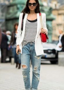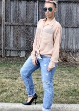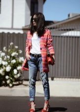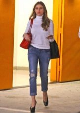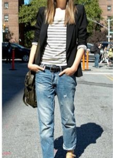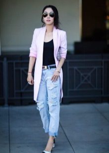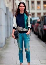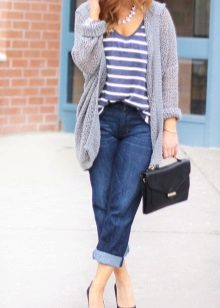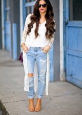It will be interesting toThe combination of such jeans with an elongated cardigan or coat - The choice of this option will not only look stylish, but also feel comfortable and convenient.