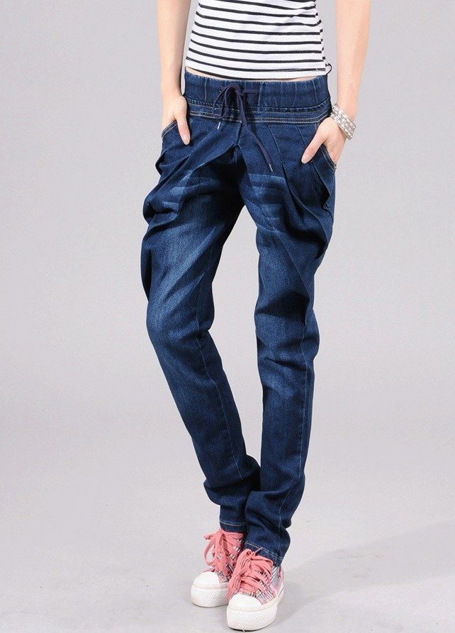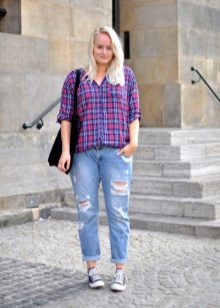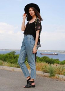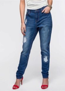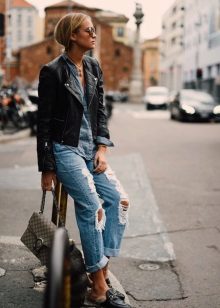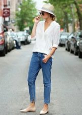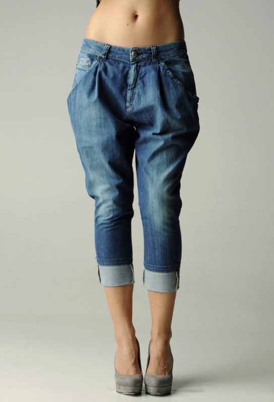 Elongated. In this model, as a rule, there is a cuff on the bottom of the leg, which fits tightly to the ankle. This allows you to give your jeans a very free look, and your whole look is light and airy.
