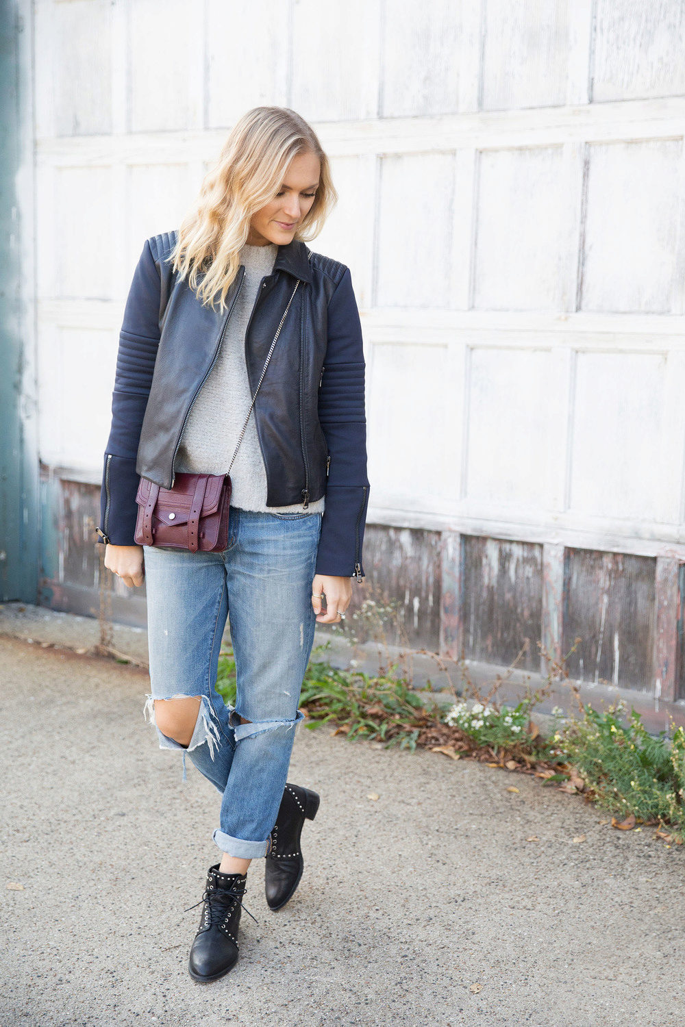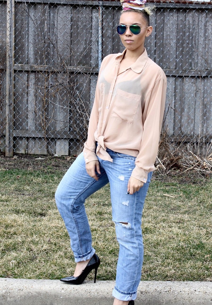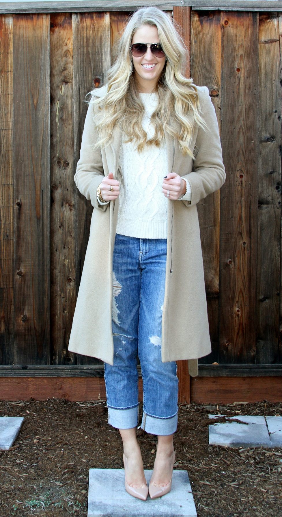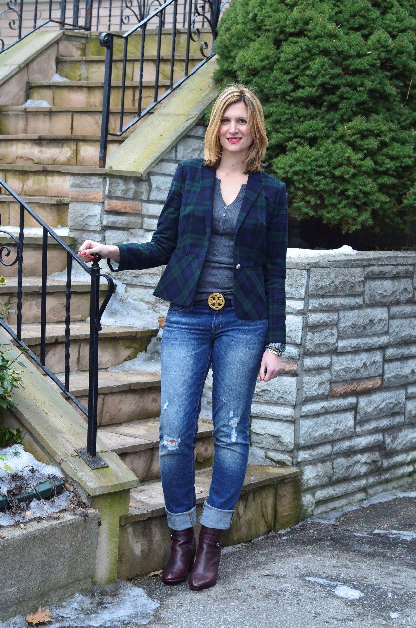 Banana jeans can be a part of great ensembles for going to a date or a romantic dinner. Wearing a light blouse with a plain print (for example, in peas), you can give your appearance a playful mood and a mischievous look. In combination with a floral patterned sweater, banana jeans will perfectly complement the image without “over-pulling” attention to yourself.