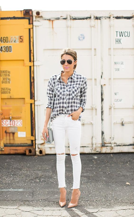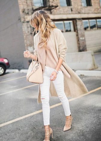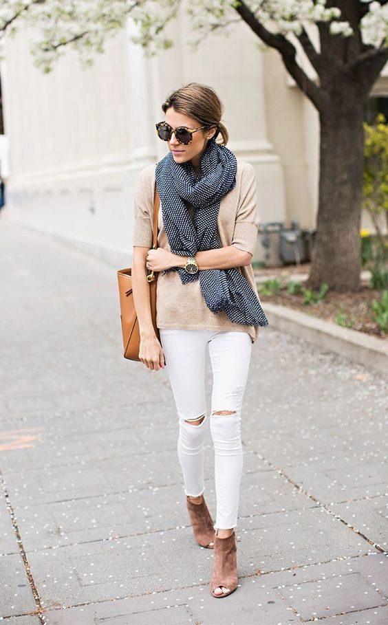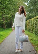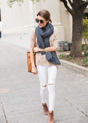 White ripped jeans should be combined with elements of wardrobe delicate pastel or neutral tones. Thus, your image will look simple and easy.