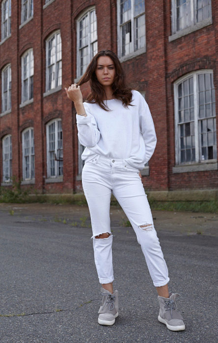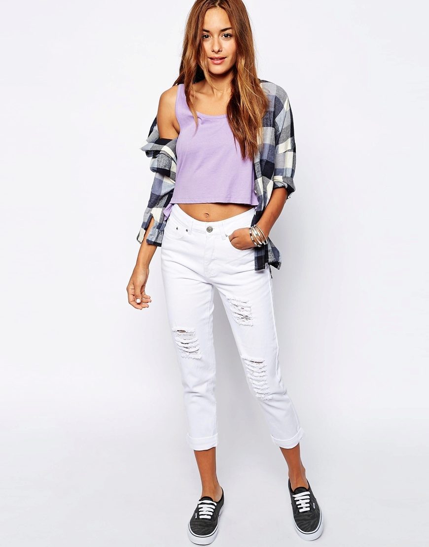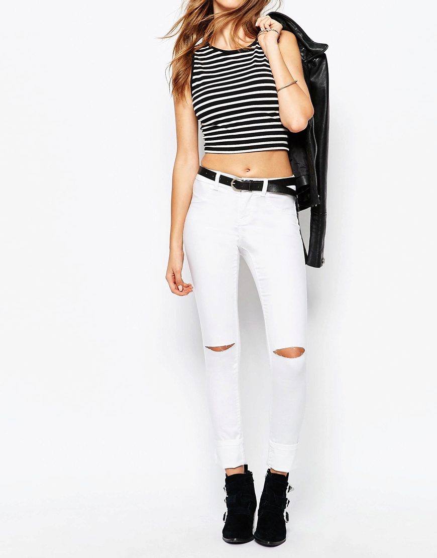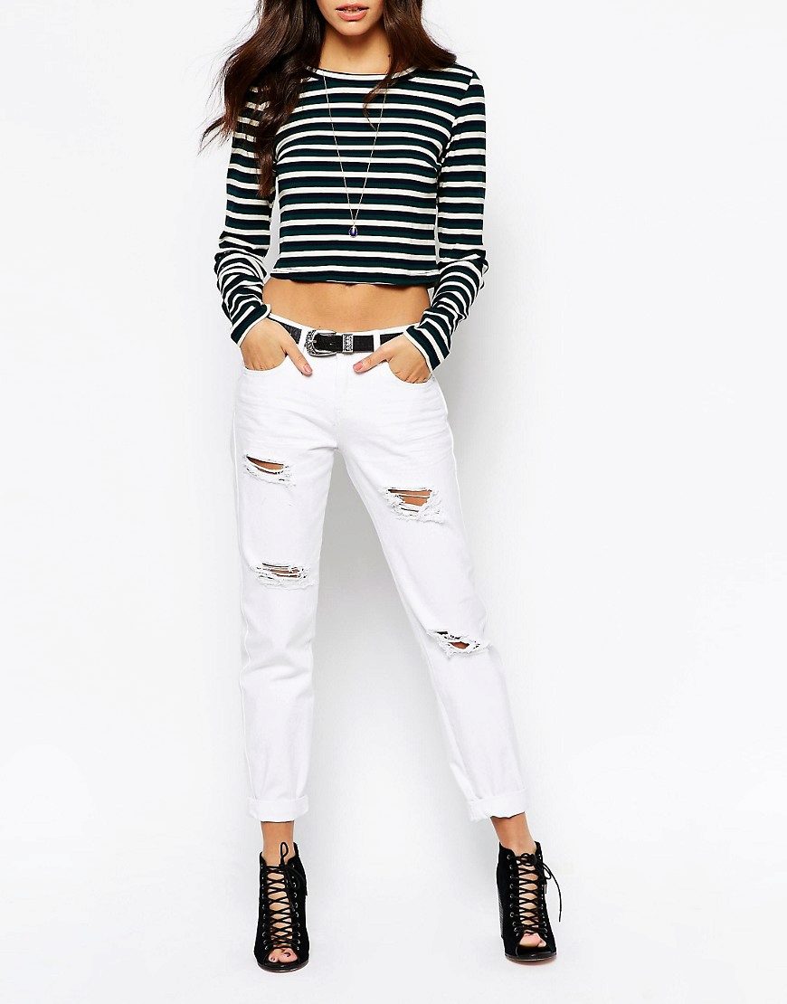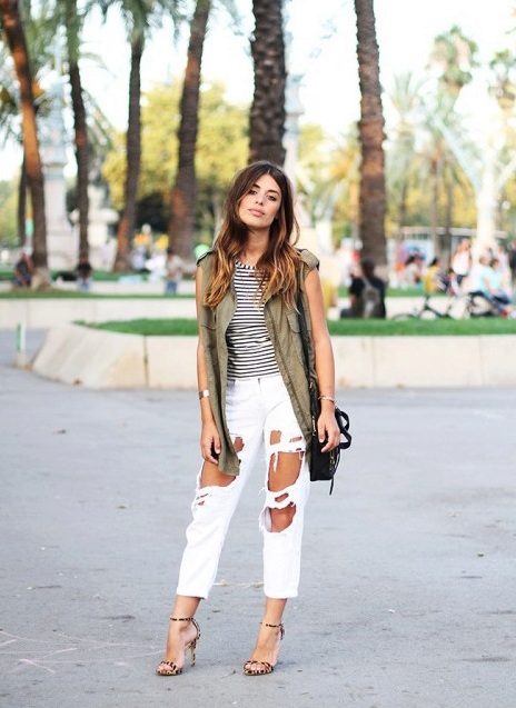 White ripped jeans have many advantages over other styles and colors. So, they will help to show the figure in a winning light, give the image of freshness, sexuality and style.