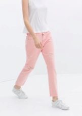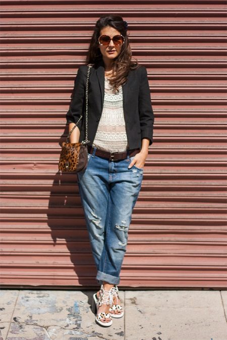 In addition, modern models of boyfriends are usually decorated with gaps and scuffs. Repeating the recent men's fashion, girls wear such jeans, slightly twisting them, which allows you to demonstrate elegant ankles.