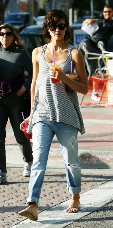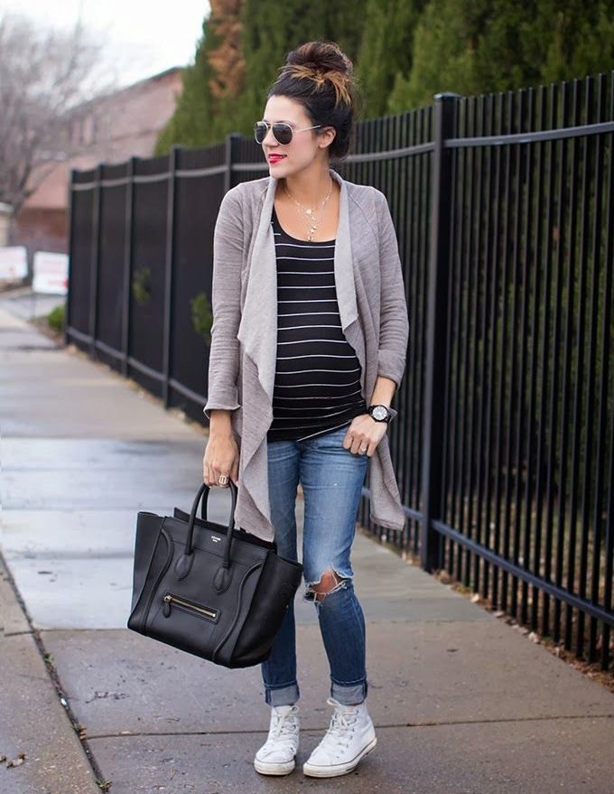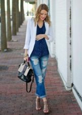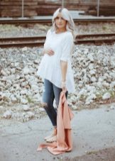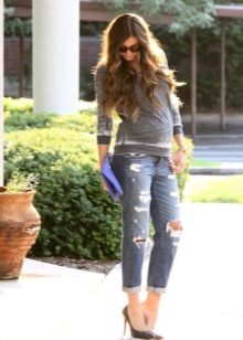 Boyfriends for pregnant women are combined with the same things as regular jeans - there are no strict restrictions and recommendations here. The main thing is for the future mother to be comfortable, so you need to listen not only to the advice of stylists, but to your body.