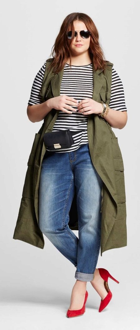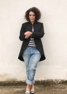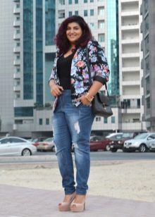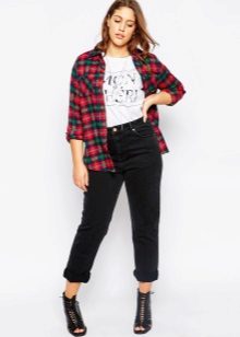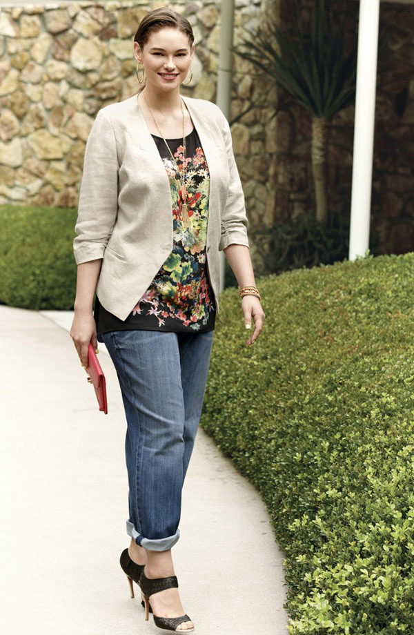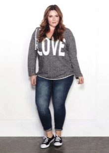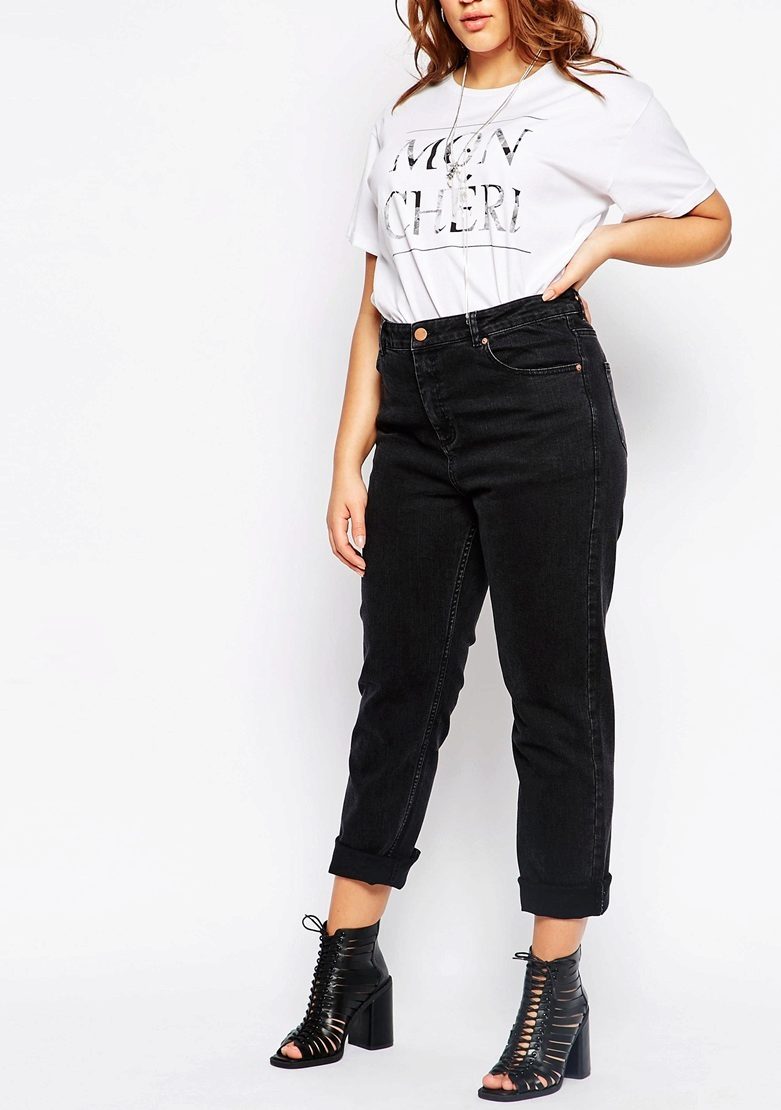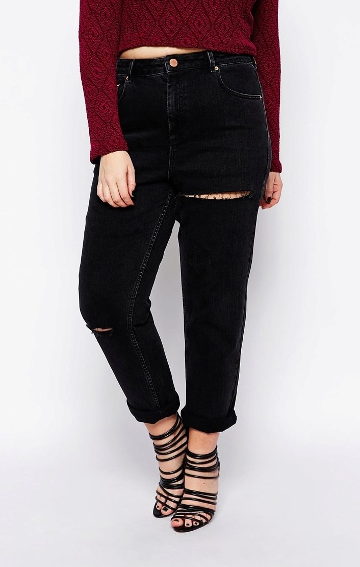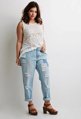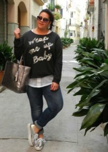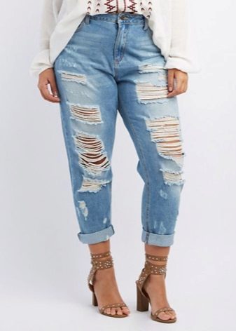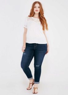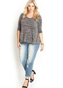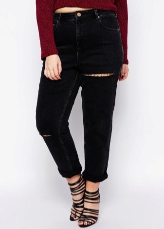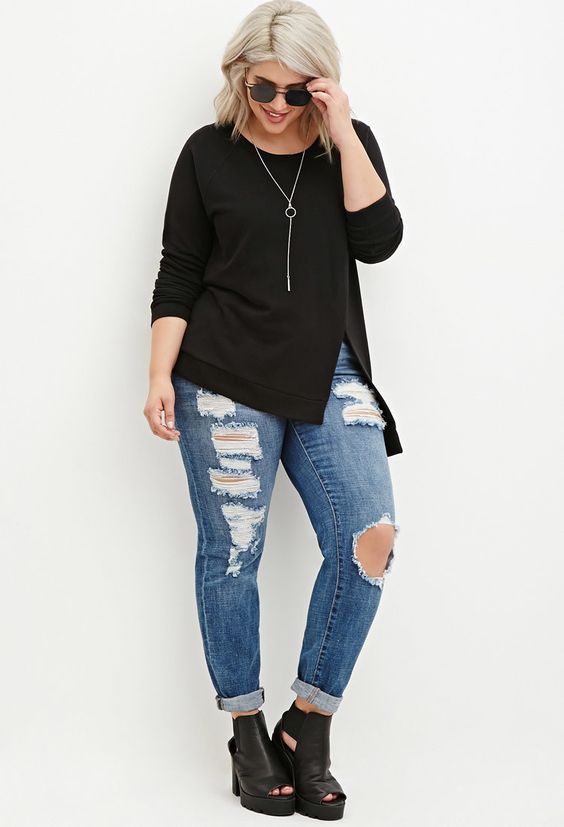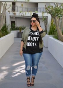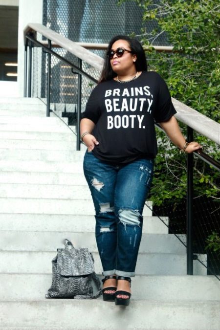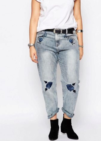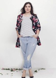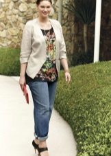 Girls with magnificent forms try to avoid voluminous clothing that fills them even more, but boyfriend jeans are an exception to the rule.