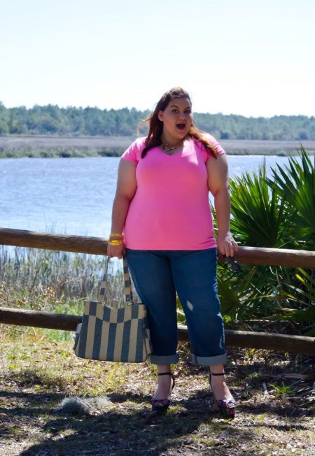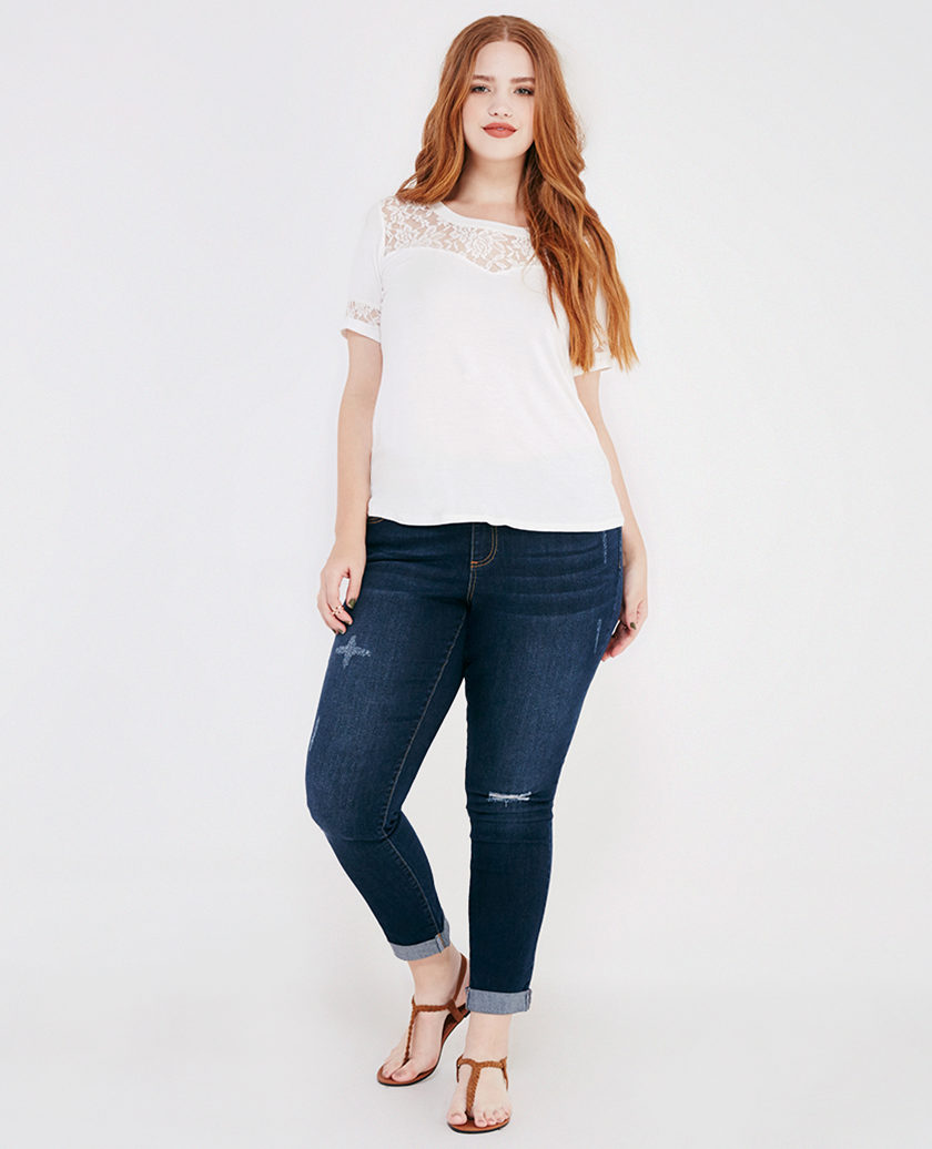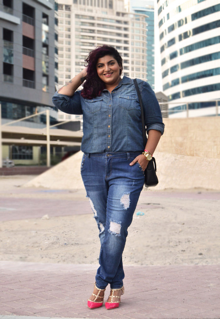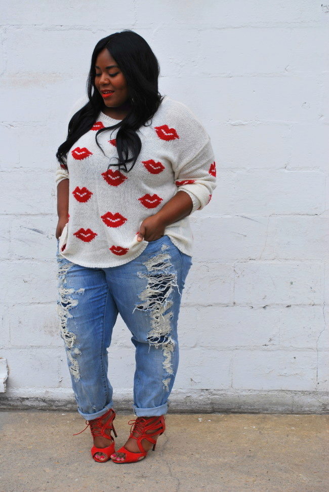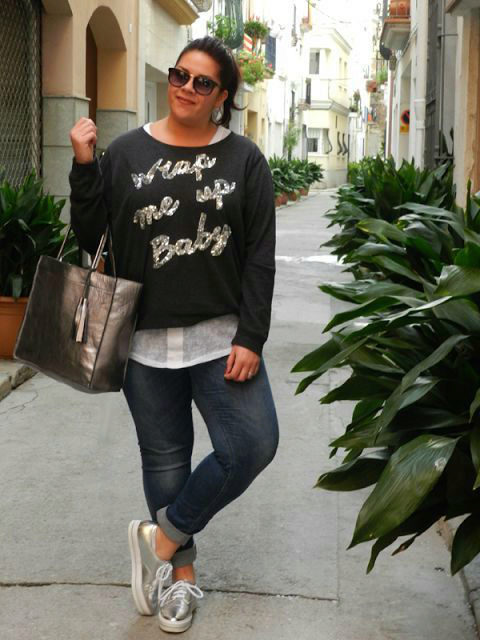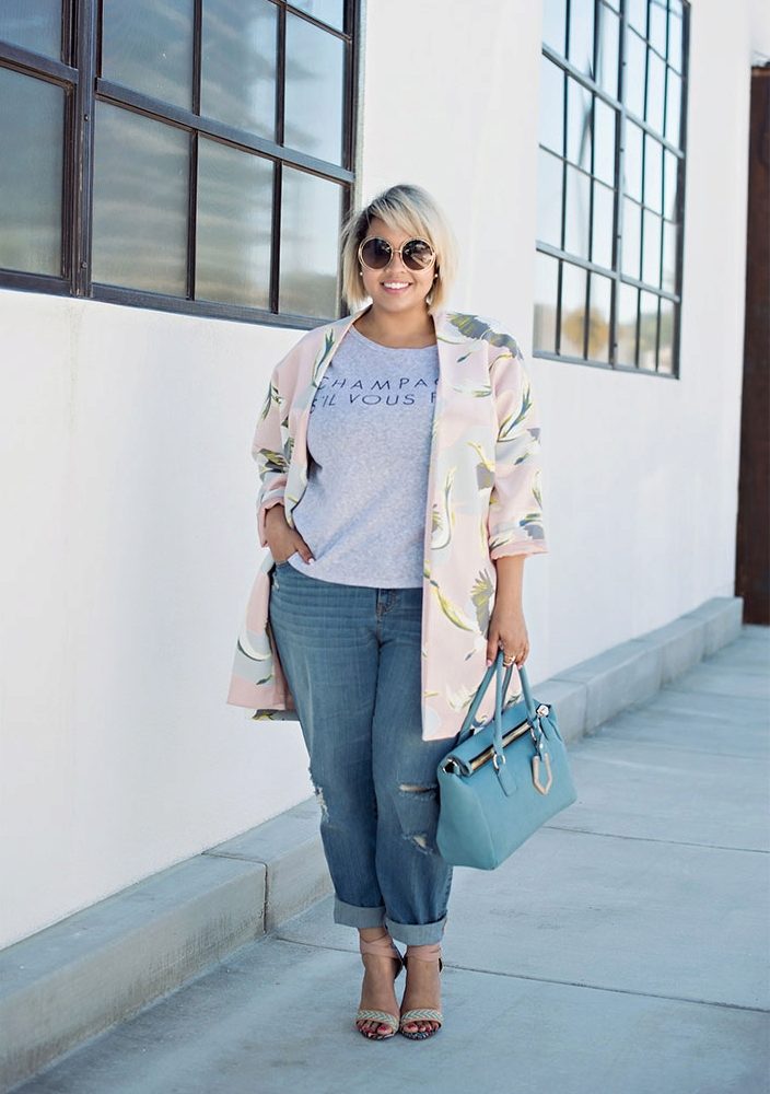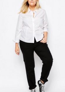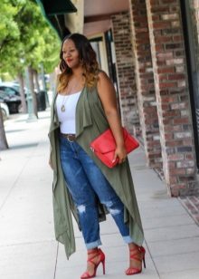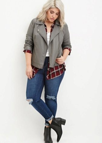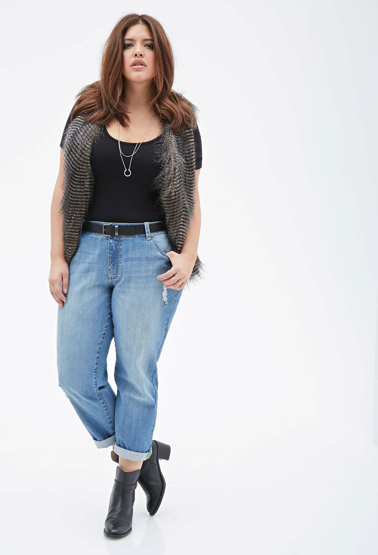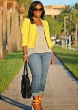 Girls with magnificent forms try to avoid voluminous clothing that fills them even more, but boyfriend jeans are an exception to the rule.