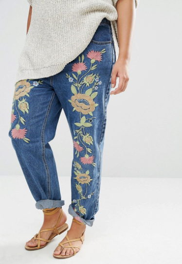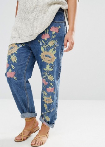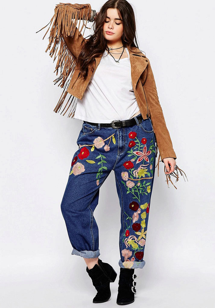 Jeans, decorated with a variety of prints, applications or embroidery are ideal for the embodiment of the bow in the style of boho or hippie.