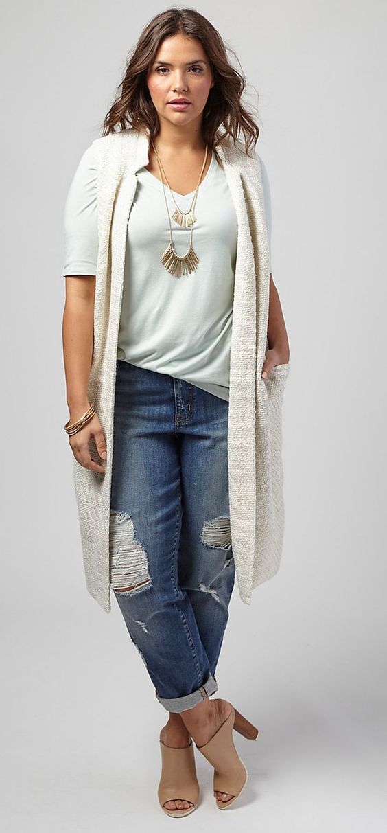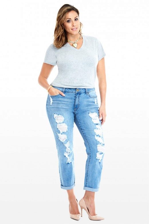 Today, boyfriend jeans can often be found in the wardrobe of a girl with curvaceous, although a few years ago, many thought that they were not suitable for full women. Now all women of fashion have at least a pair of boyfriend jeans, which are a great replacement for tight-fitting styles.