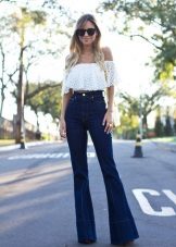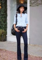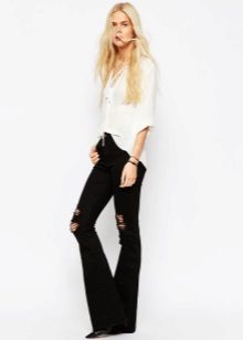 Today, trendy are flared jeans that are suitable for creating stylish bows in different styles. Black flared jeans should be worn with a blouse decorated with a floral print or with ethnic patterns.