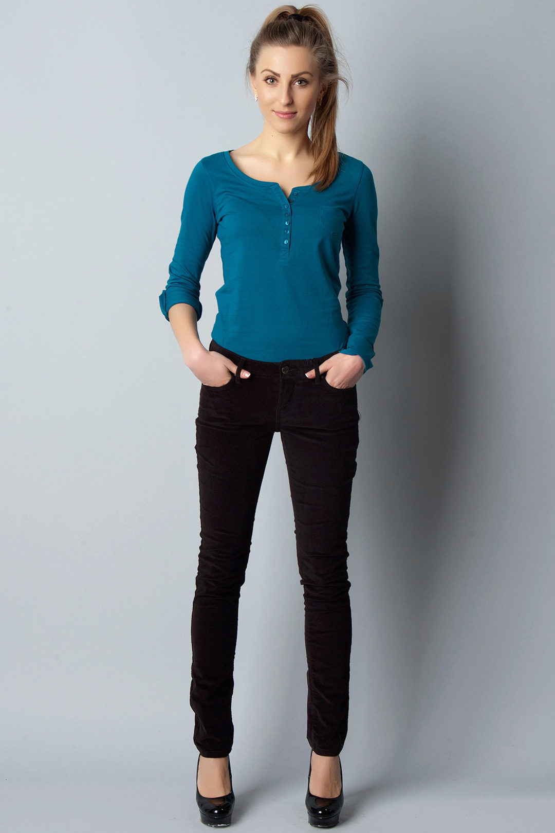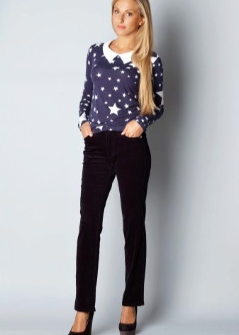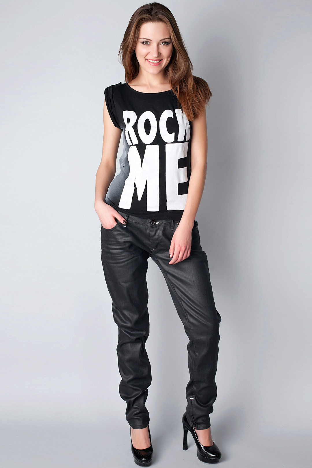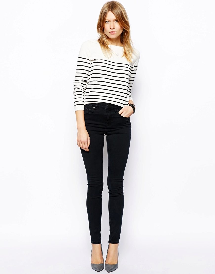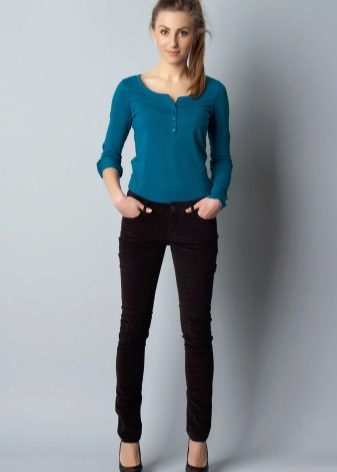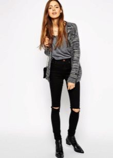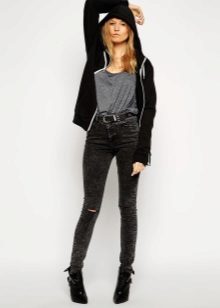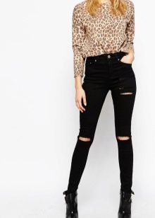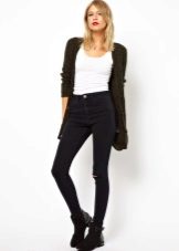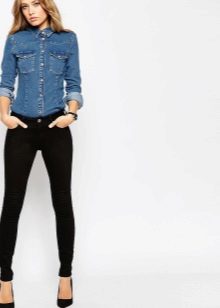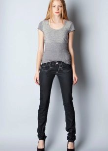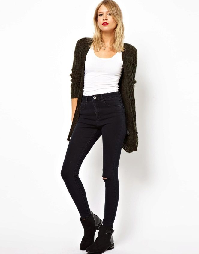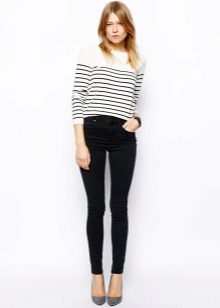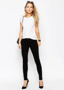 Black jeans, skinny cut, prefer girls of small stature, because they allow you to visually lengthen the silhouette. Slim models look great with high heels shoes.