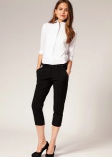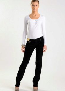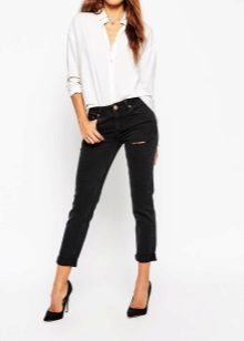 White blouses of different cut look beautiful with black jeans. You can give preference to the free cut, which will allow to hide a small belly or magnificent thighs.