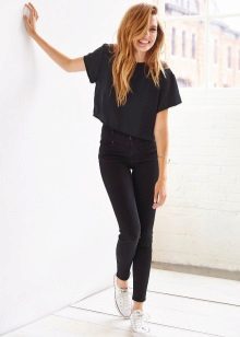 To create a casual look, you can combine black jeans of any style with T-shirts, and the choice of their cut and color solution is completely individual.