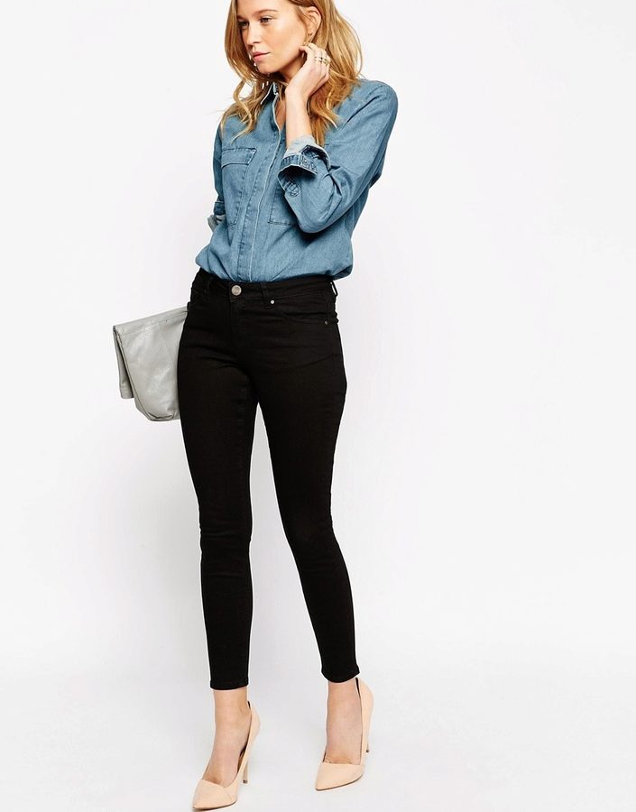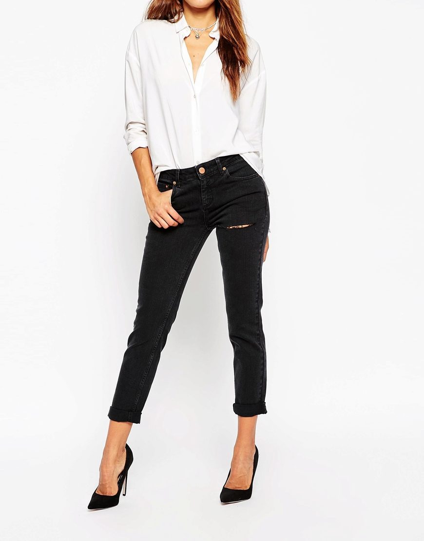Black jeans are practical and comfortable to wear. They may look seductive and sexy, or elegant and reserved. It all depends on the choice of top, shoes and other accessories.