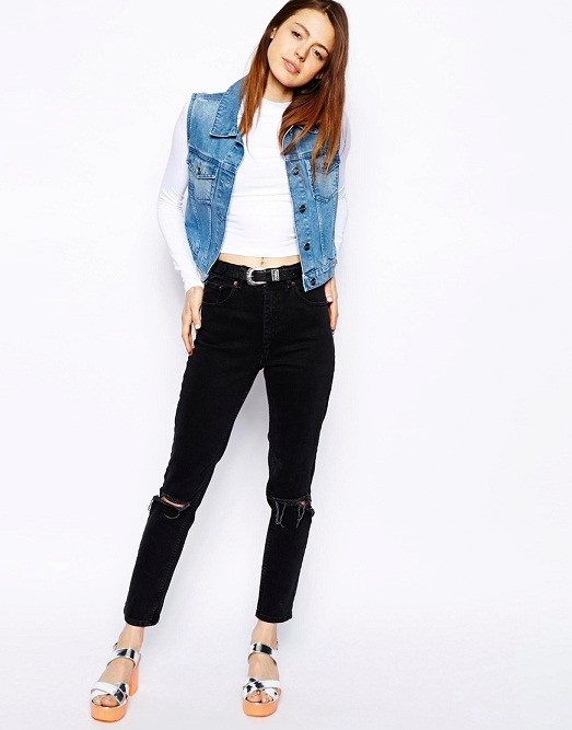 - Black jeans with high-cut fit fit to visually lengthen legs, so the growth will seem higher, but models with a low fit, on the contrary, are ideal for tall fashionistas.